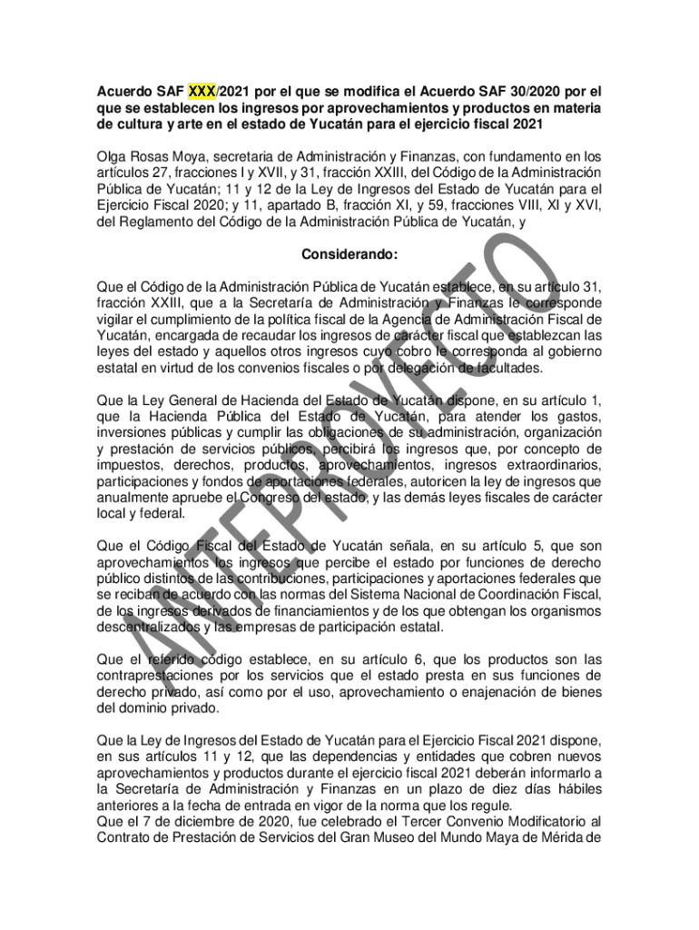 Acted SAF XXX/2021 POR el Que SE modified El Acted SAF 30/2020 POR el