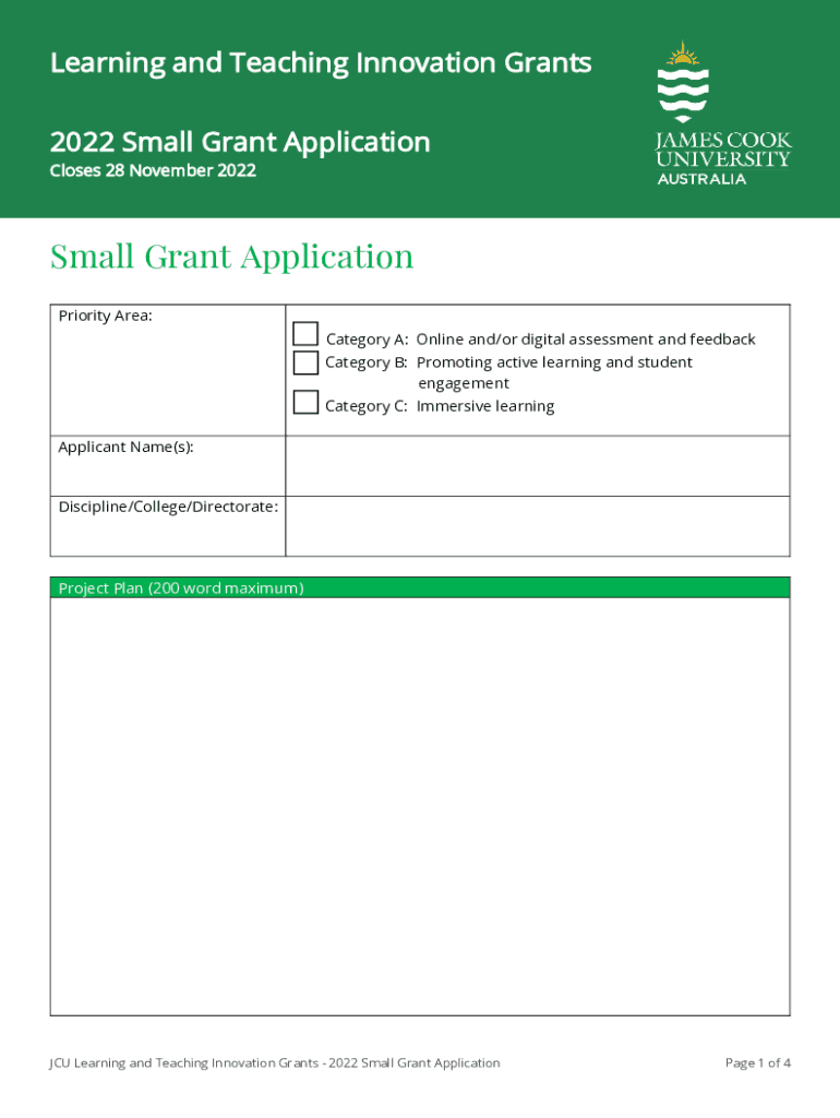 Learning and Teaching Innovation Grants 2022 Small Grant Application Closes 28 November 2022Small Grant Application Priority Area: Category A: Online and/or digital assessment and feedback Category
