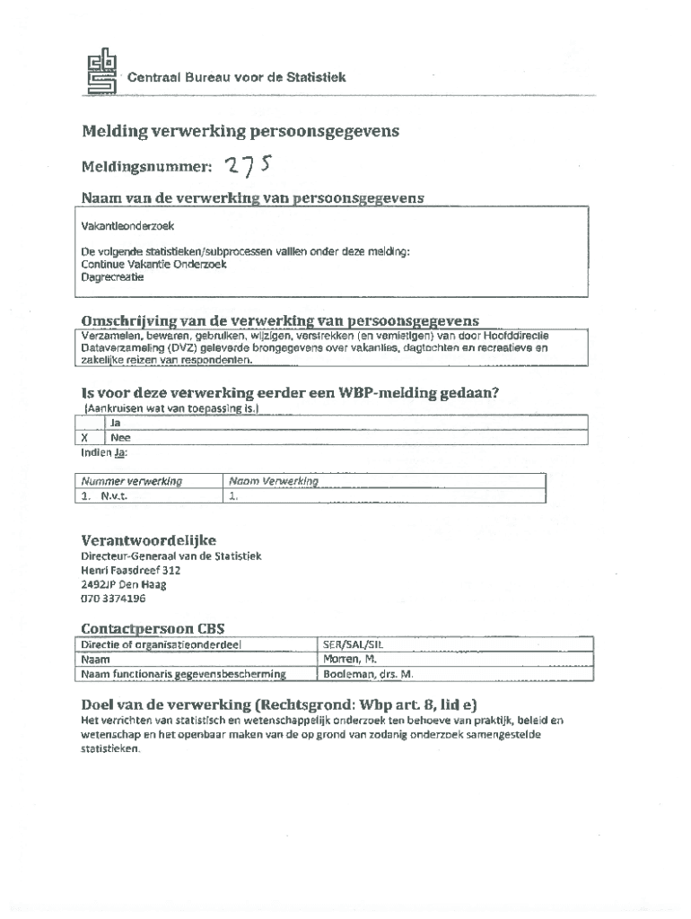 1:Central Bureau poor de StatistiekMelding overworking persoonsgegevens2 7 SMeldingsnummer:Nam Vance verwerkjvpersoonggvens