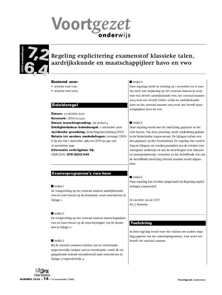 CEVOmededelingenRegeling explicating examens Lassie taken, aardrijkskunde en maatschappijleer have en vwoBestemd poor:Article 4 chosen poor two, Dee reeling treed in working op 1 November en is poor