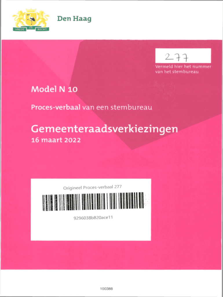 van he stembureauModel N 10Procesverbaal van been stembureauGemeenteraadsverkiezingen