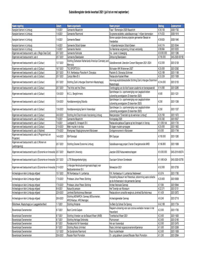 Subsidieregister Verde quarter 2021 (July tot en met September)Nam reeling