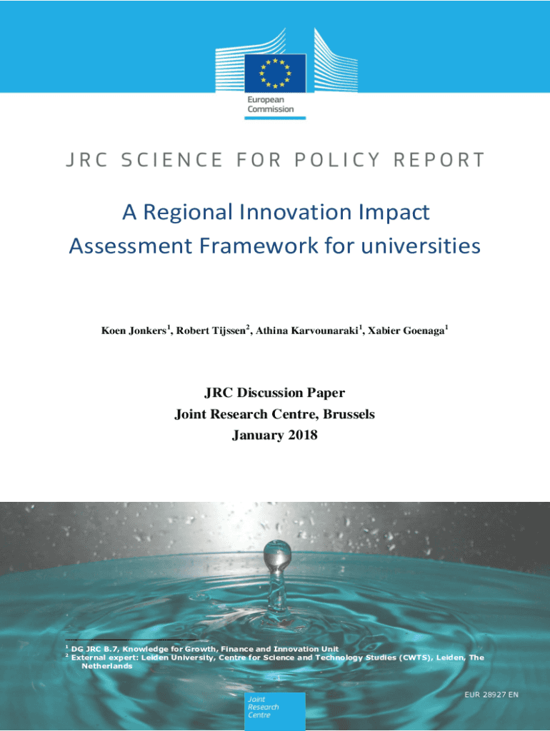 A Regional Innovation Impact Assessment Framework for universitiesKoen Jonkers1, Robert Tijssen2, Athena Karvounaraki1, Xavier Goenaga1JRC Discussion Paper Joint Research Center, Brussels January