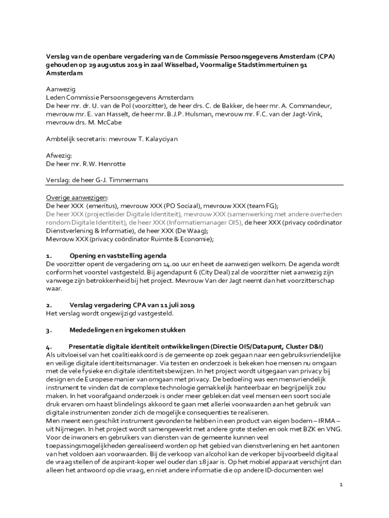 Get the free Commissie Persoonsgegevens Amsterdam - Gemeente Amsterdam