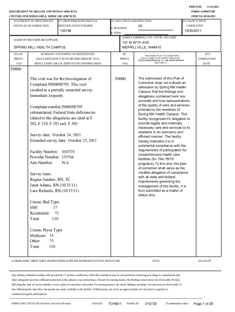 Get the free F0000 This visit was for the Investigation of Complaint IN00098705 ...