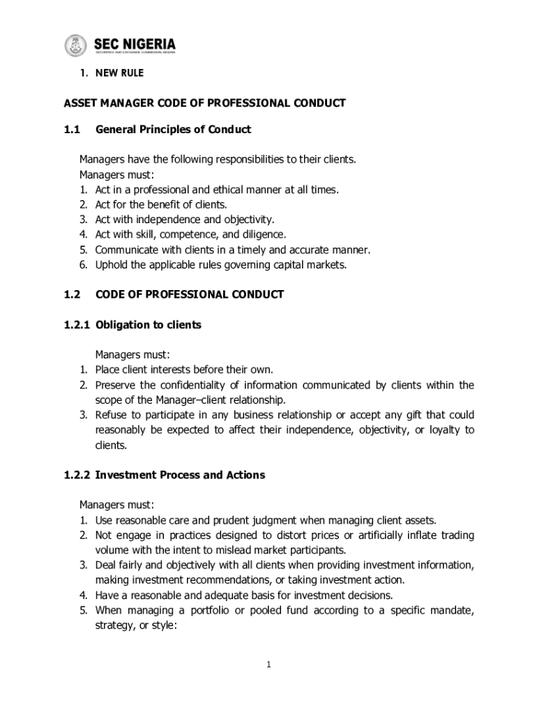 1. NEW RULE ASSET MANAGER CODE OF PROFESSIONAL CONDUCT 1.1General Principles of ConductManagers have the following responsibilities to their clients. Managers must: 1. Act in a professional and ethical