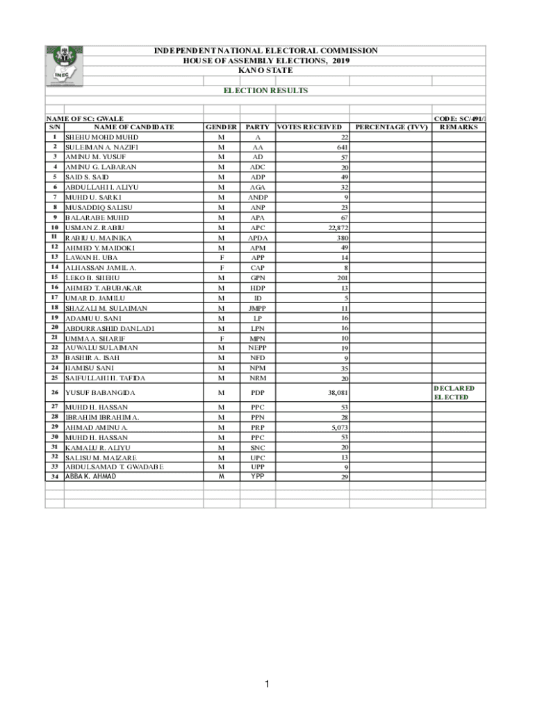 HOUSE OF ASSEMBLY ELECTIONS, 2019