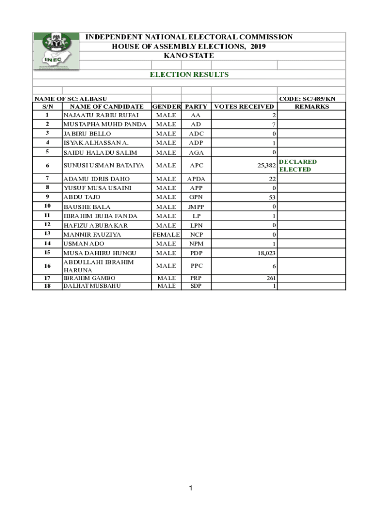 HOUSE OF ASSEMBLY ELECTIONS, 2019