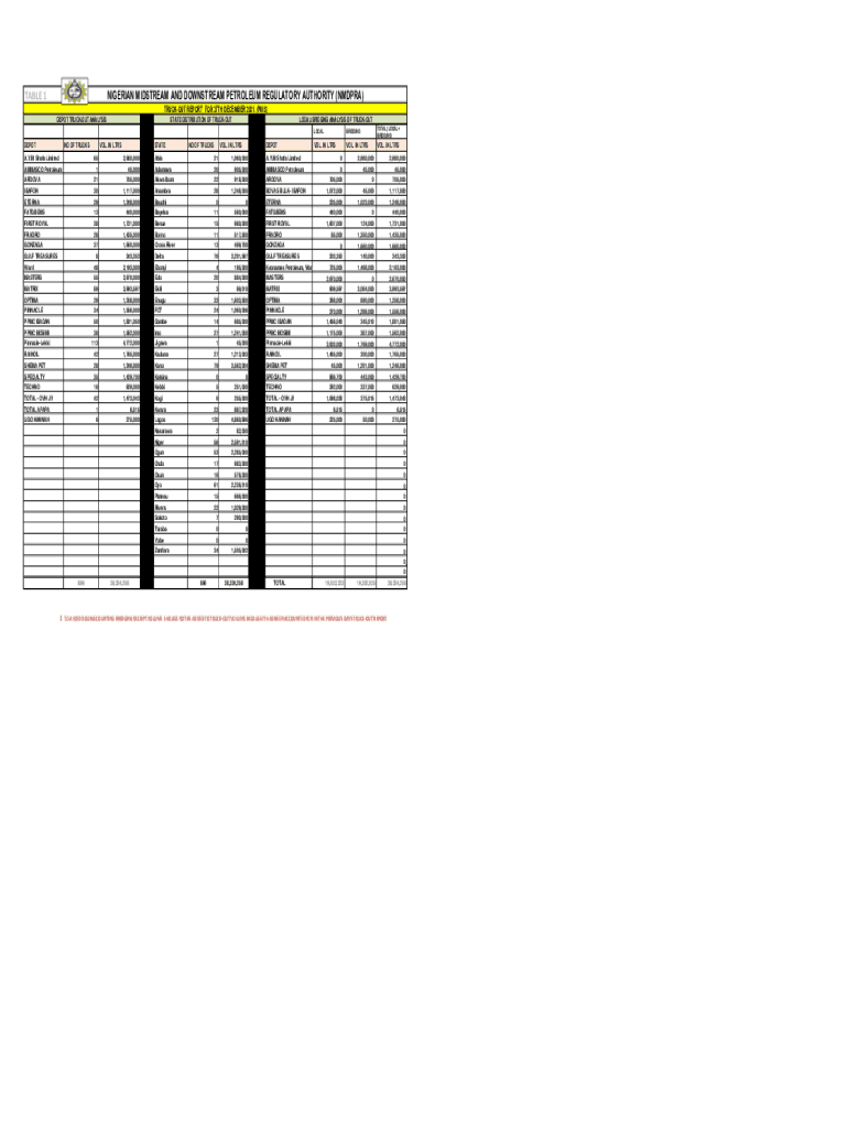 NIGERIAN MIDSTREAM AND DOWNSTREAM PETROLEUM REGULATORY AUTHORITY (NMRA)TABLE 1TRUCKOUT REPORT FOR 27TH DECEMBER 2021. (PMS)
