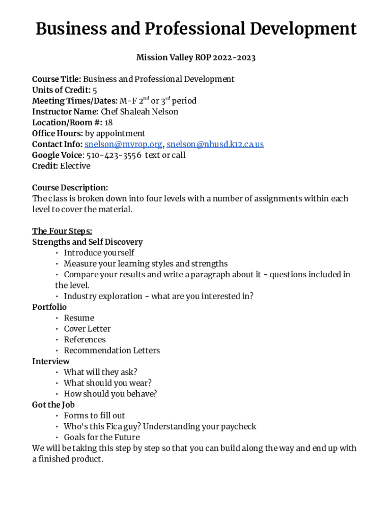 Get the free Business Syllabus -Nelson- 22-23 - Mission Valley ROP