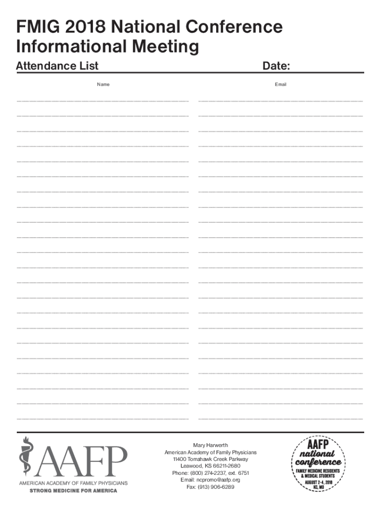 FIG 2018 National Conference Informational Meeting Attendance Postdate:NameEmail____________________________________________________________________________________________________________________________________Mary