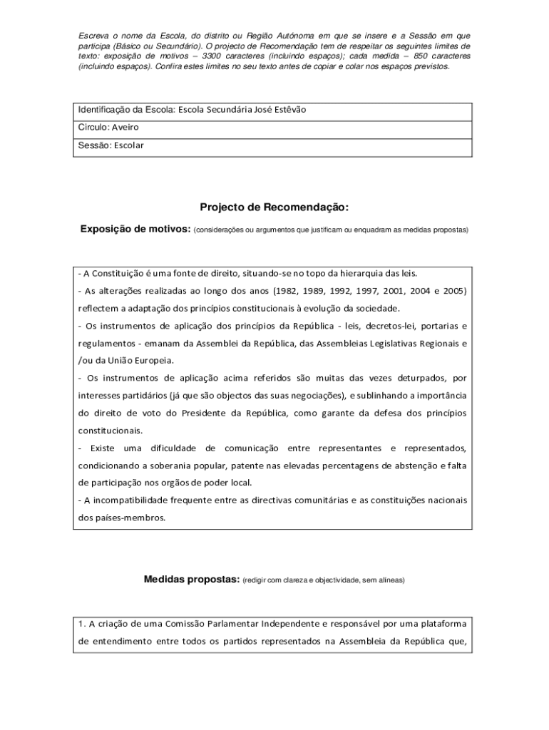 Excreta o Nome the Es cola, do district of Region Autonomy em Que SE insert e an Esso em Que participate (Basic of Scenario). O project ode Recommended TEM de respecter OS beguines limits DE text: