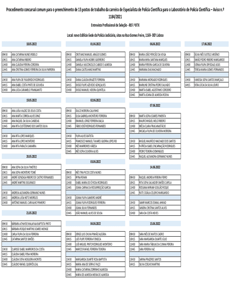 Procedimento concurs comm para o preenchimento de 13 posts DE tribal the Carrera de Specialist de Polcia Scientific para o Laboratory de Polcia Scientific Avis n.