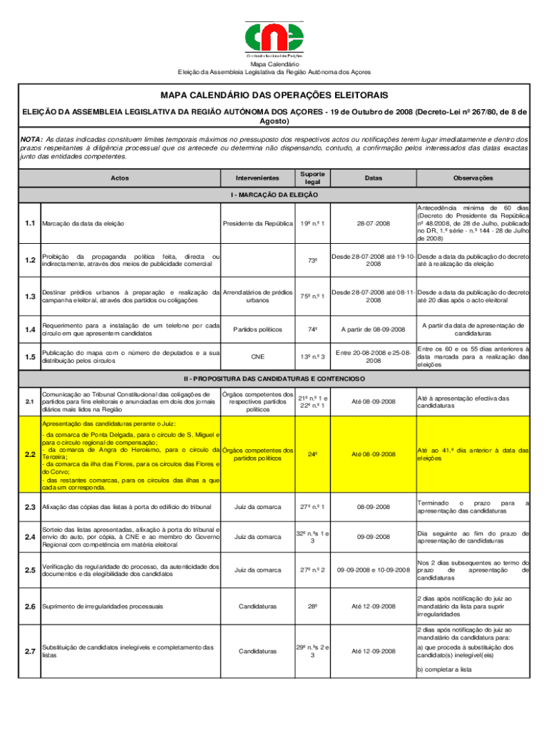 MAPA Calendar Elam the Assembled Legislative the Region Autonomy dos AoresMAPA CALENDAR WAS OPERATES ELECTORAL ELECT DA ASSEMBLE IA LEGISLATIVE DA REGION AUTONOMY DOS ACRES 19 DE Outrode 2008 (Decitesla
