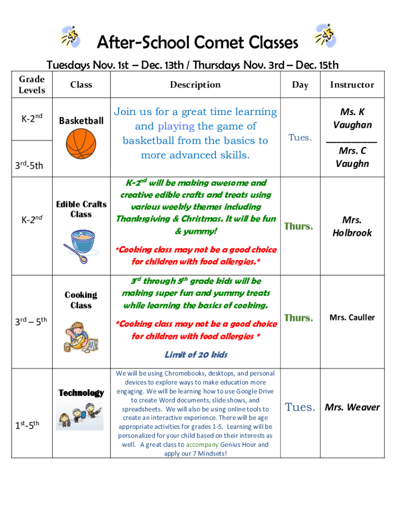 After-School Comet Classes is not the form you're looking for?Search for another form here.