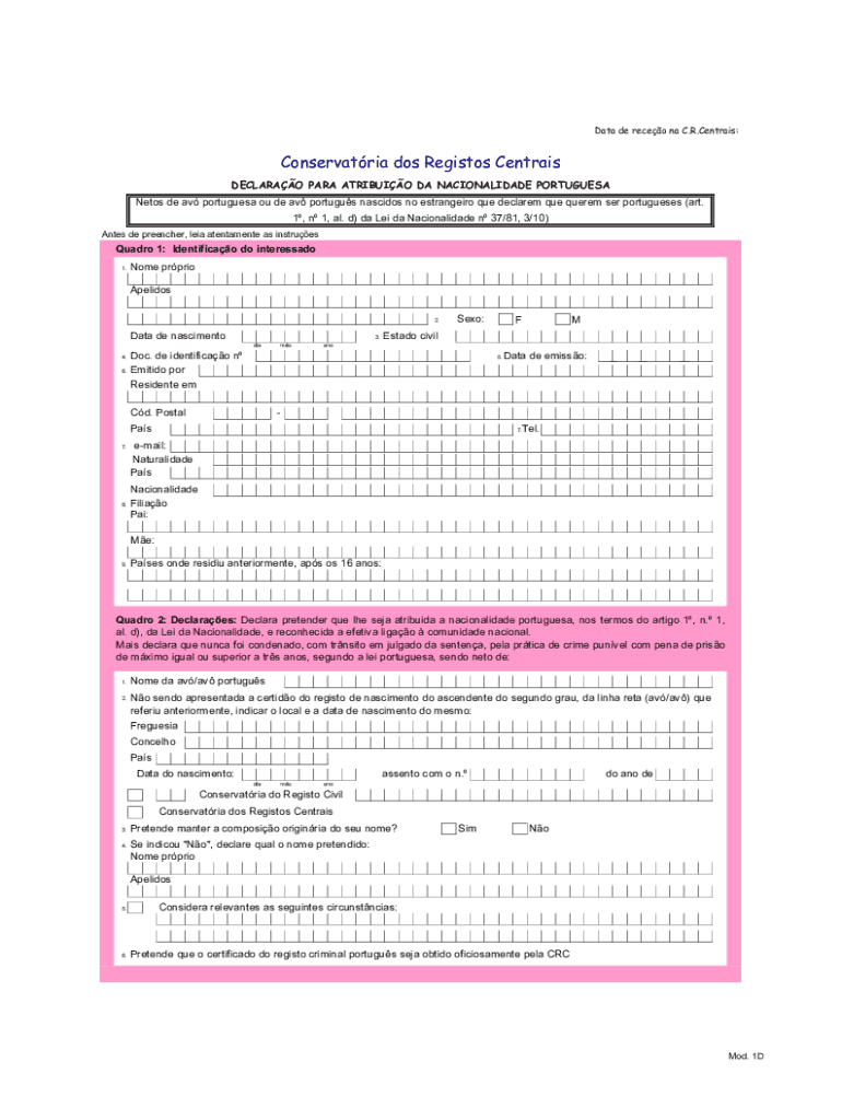 Data DE recto Na C.R. Centrals:Conservative dos Register Centrals DECLARED PARA TRIBUTE DA NACIONALIDADE PORTUGUESE Nets de av Portuguese of de av Portuguese acids no estranged Que declared Que quark