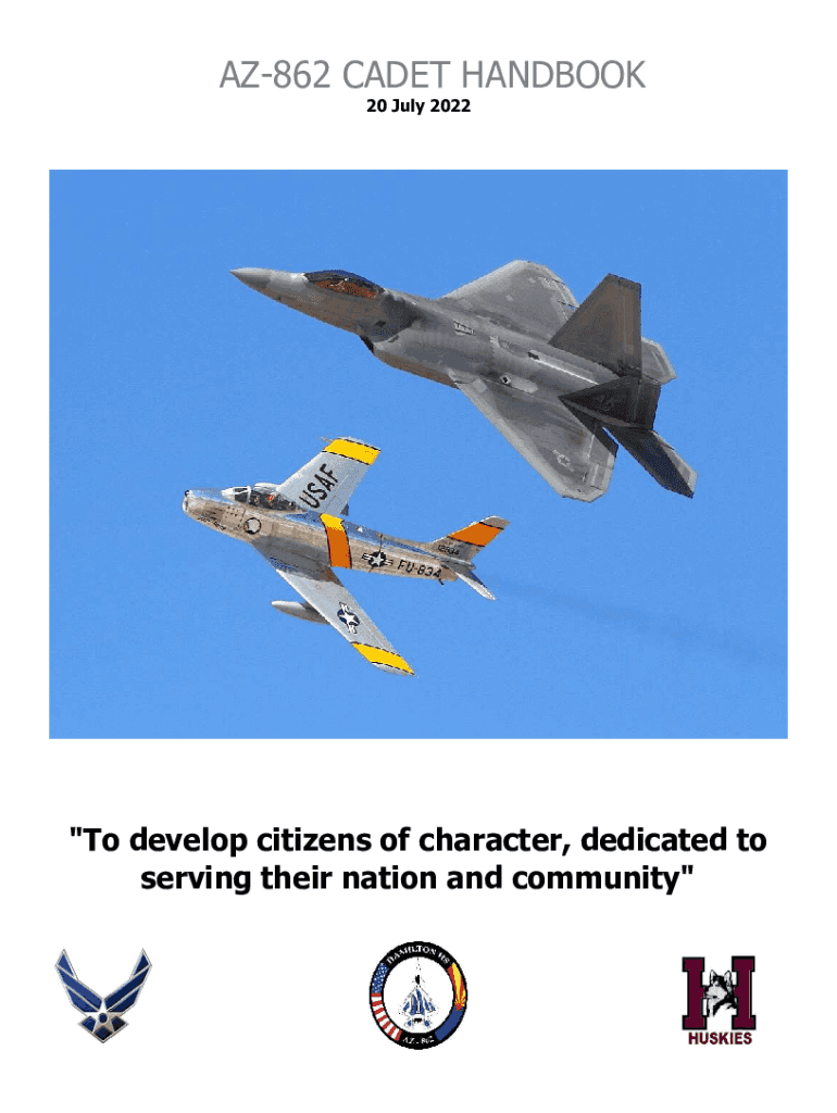 AZ862 CADET HANDBOOK 20 July 2022\” To develop citizens of character, dedicated to serving their nation and community\” AZ86220 July 2022 AFJ ROTC CADET CODE AS AN AIR FORCE JUNIOR ROTC CADET,