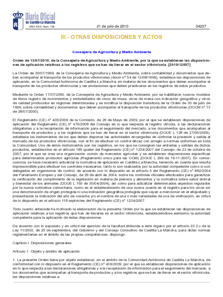Order DE 13/07/2010, DE la Consider DE Agricultural y Media Ambient, POR la Que SE stablemen