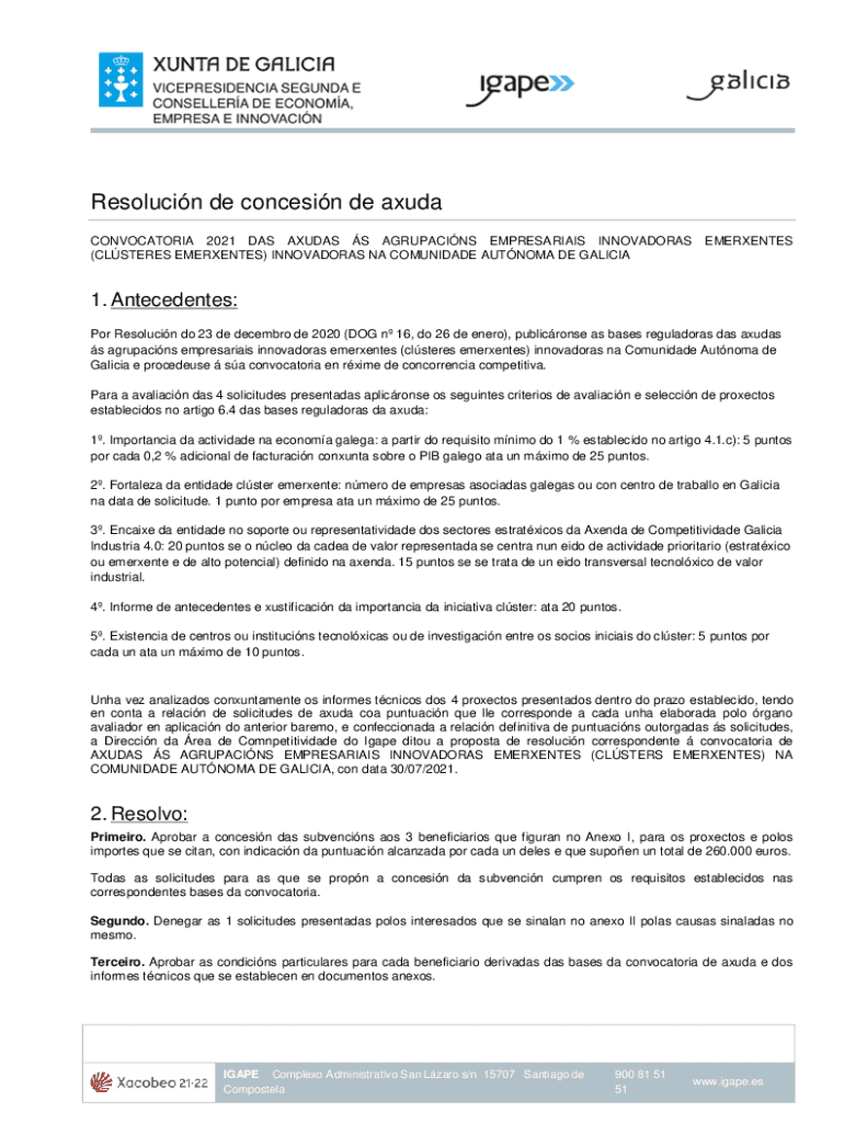 (CLUSTERS EMERGENCE) INNOVATORS NA COMMUNICATE AUTONOMY DE GALICIAEMERXENTES1. Antecedents: