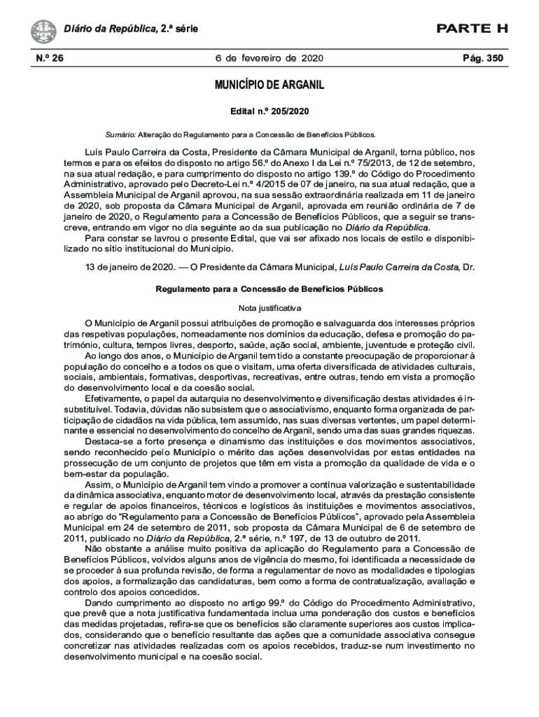 Obtenha o gratuito Sumrio: Alterao do Regulamento para a Concesso de Benefcios Pblicos