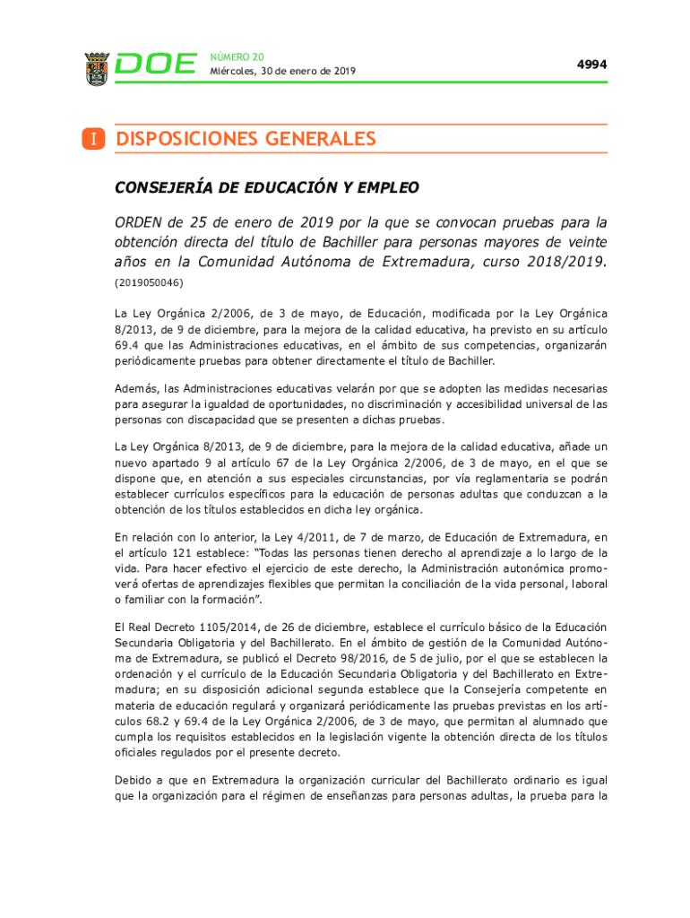 Circles, 30 de Nero de 2019I4994DISPOSICIONES GENERALS