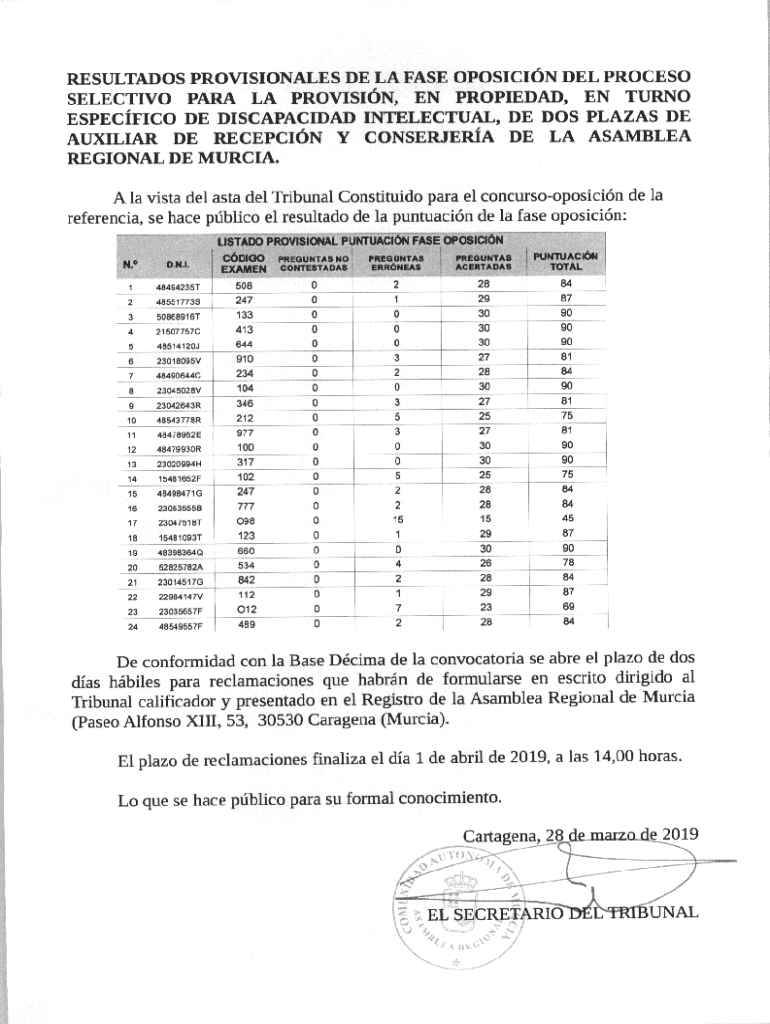 RESULTADOSPROVISIONALESSELECTIVOPARAESPECFICODEA la vistareferencia, sePLAZASdelpblico elhaceconcursooposicin de