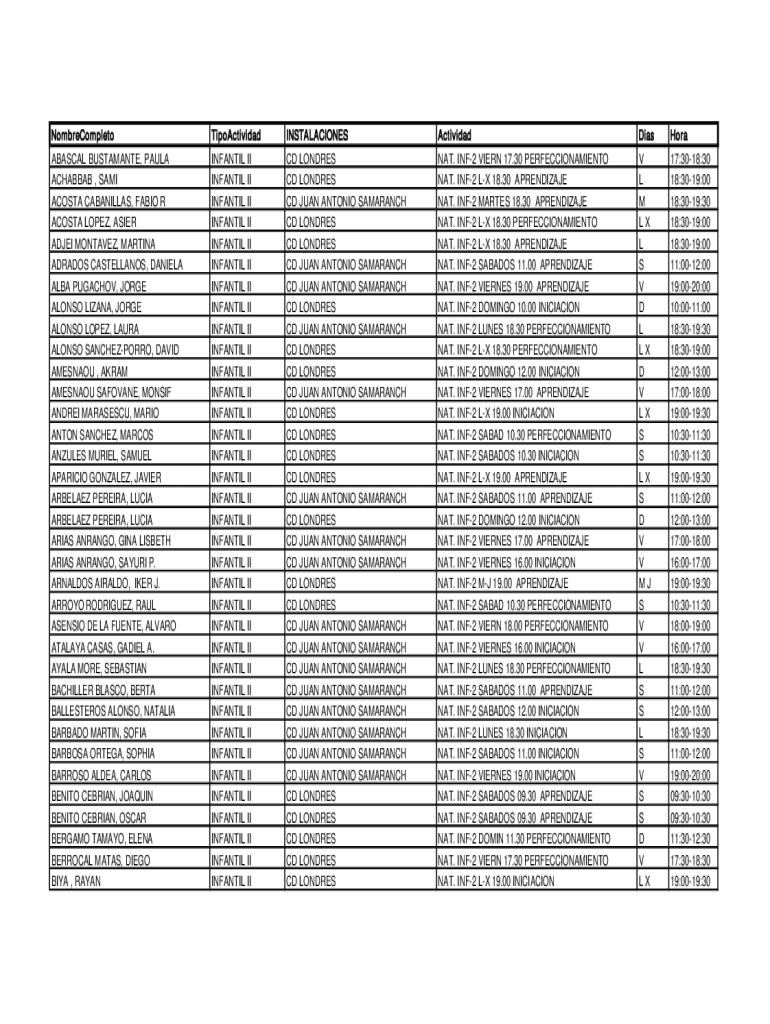 NombreCompletoTipoActividadINSTALACIONESActividadDiasHoraABASCAL BUSTAMANTE, PAULA