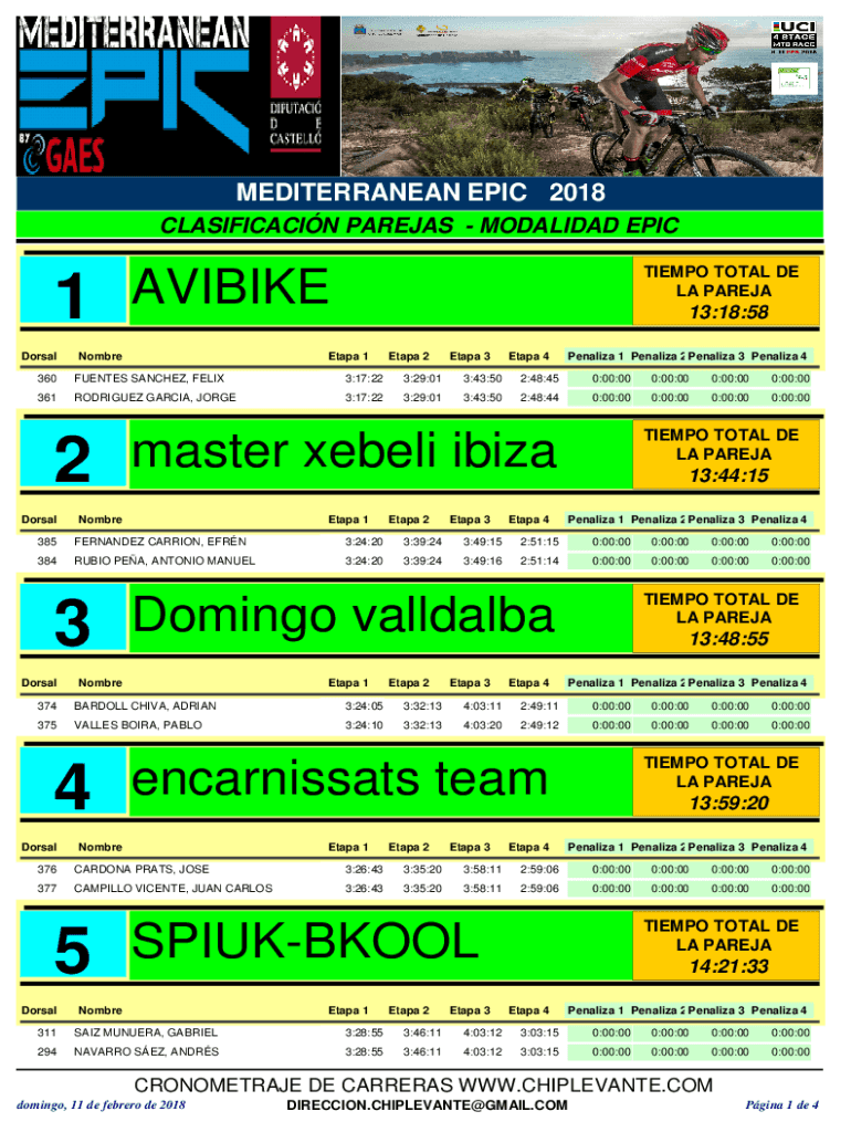 LA PAREJA13:18:58Etapa 1Etapa 2Etapa 3Etapa 4Penaliza 1 Penalize 2 Penalize 3 Penalize 4360FUENTES SANCHEZ,