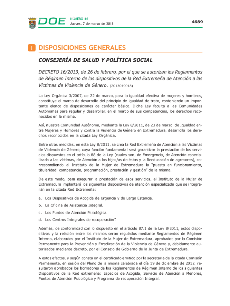 SECRET 16/2013, DE 26 de Ferraro, POR el Que SE authorized Los Regiments