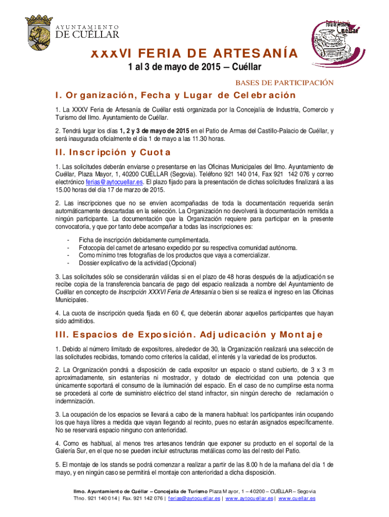 1. La XXXV Beria de Artesana de Cullar est organized POR la Conceal DE Industrial,
