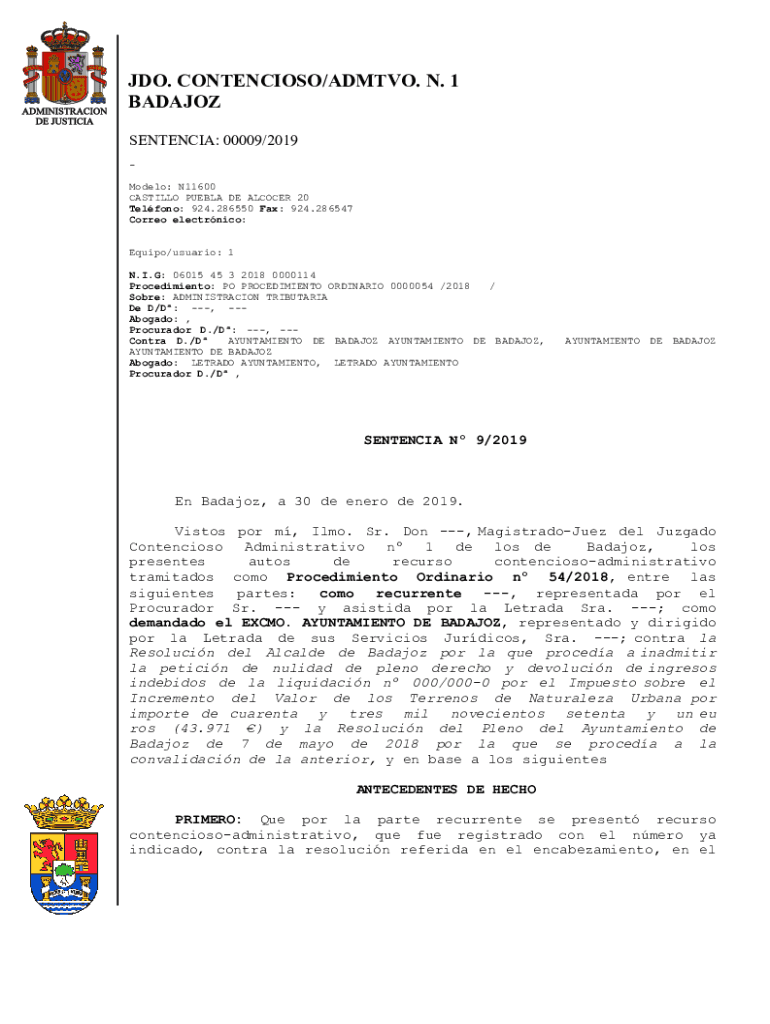 Individuals or entities involved in a contentioso-administrative legal case are required to file sentencia - jdo contenciosoadmtvo.