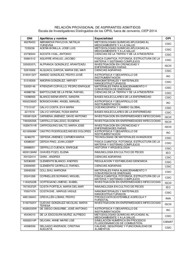 DNIApellidos y nombreEspecialidad7233236ABRAMOVA PAVLOVA, NATALIA