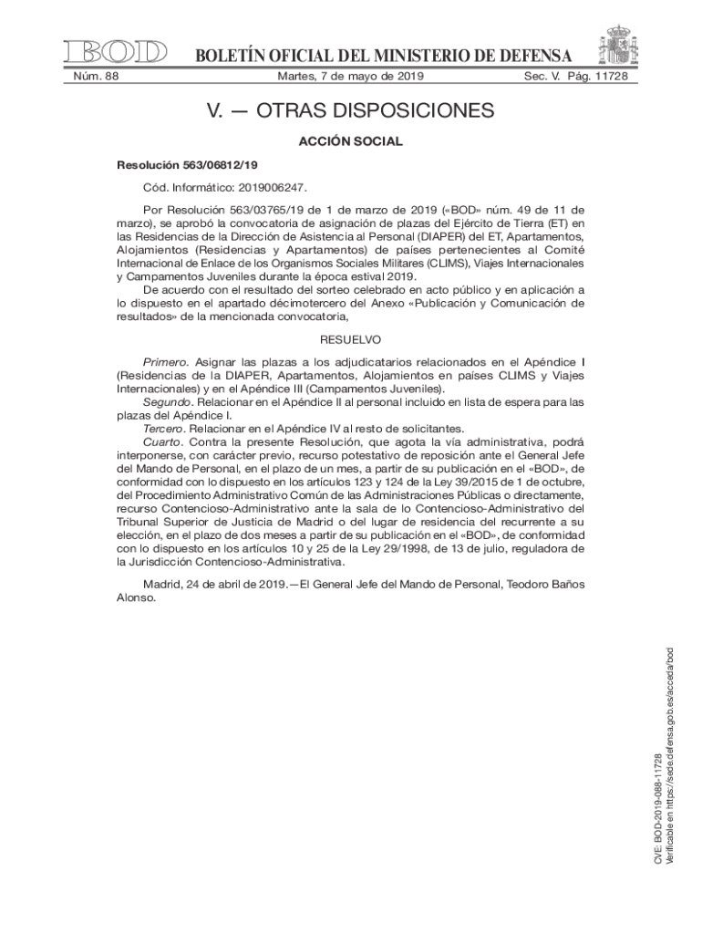 Get the free boletn oficial del ministerio de defensa - v.otras disposiciones