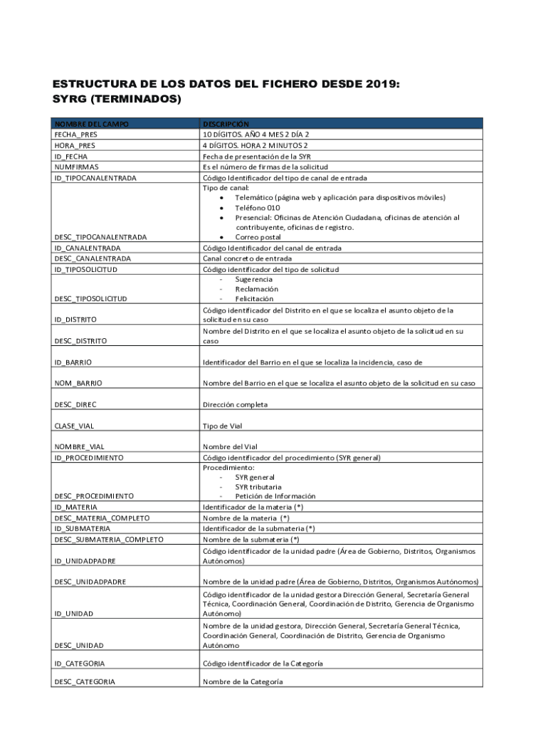Nombre del campo requires the reporting of specific data points as outlined by the regulatory body.