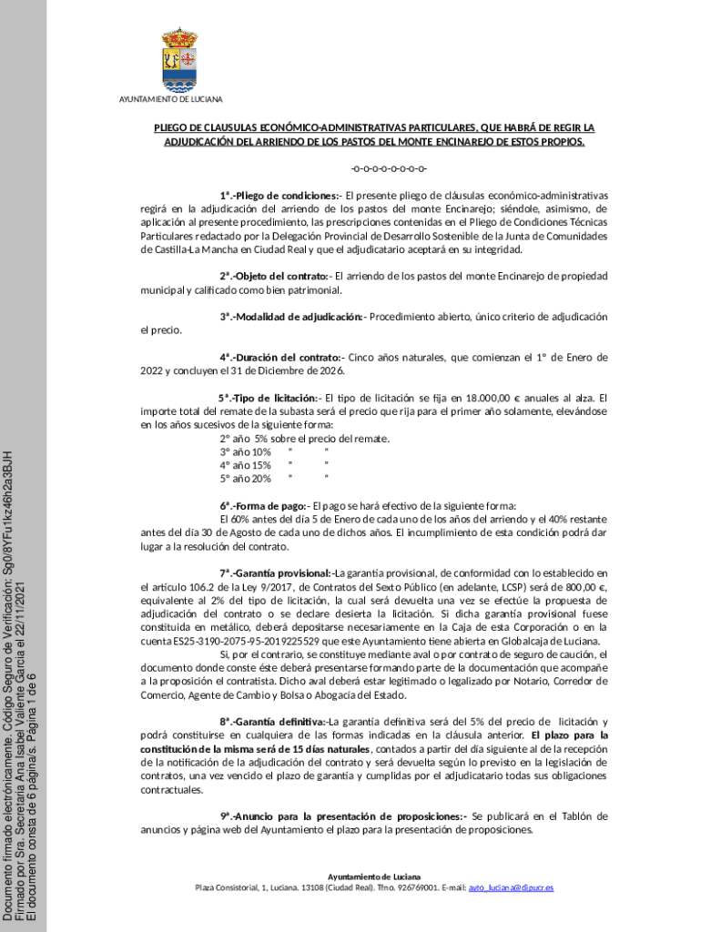 AYUNTAMIENTO DE LUCIANAPLIEGO DE CLAUSES ECONMICOADMINISTRATIVAS PARTICULARS, QUE HAIR DE REGOR LA
