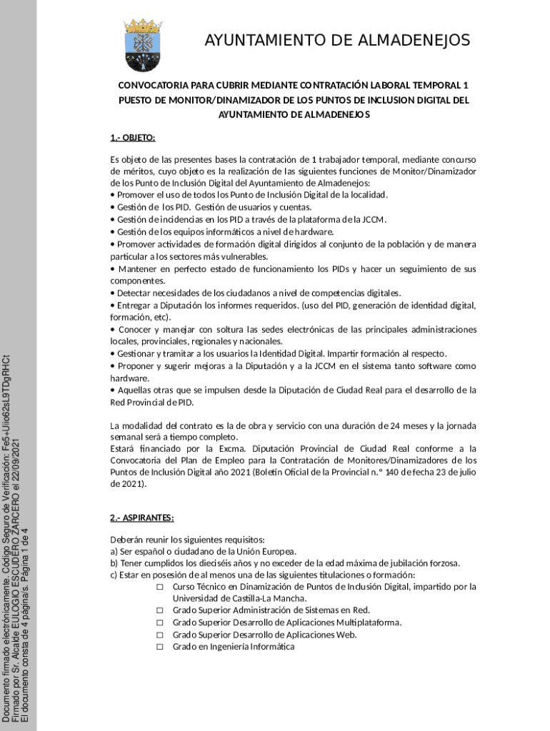 Get the free Ampliacin de la Bolsa de Trabajo de Monitor/Dinamizador ...