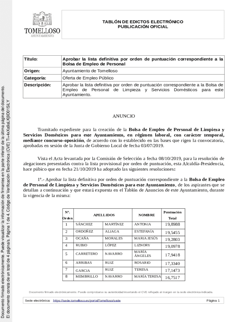 El document cons ta de UN total DE 4 Gina/s. Gina 1 DE 4. Cargo de