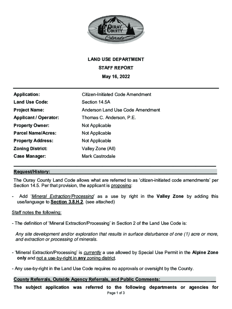 Application:CitizenInitiated Code Amendment Land Use Code:Section 14.5AProject Name:Anderson Land Use Code AmendmentApplicant / Operator:Thomas C. Anderson,
