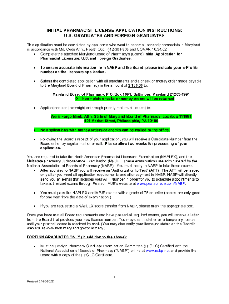 Get the free health.maryland.govpharmacydocsINITIAL PHARMACIST LICENSE APPLICATION INSTRUCTIONS: ...