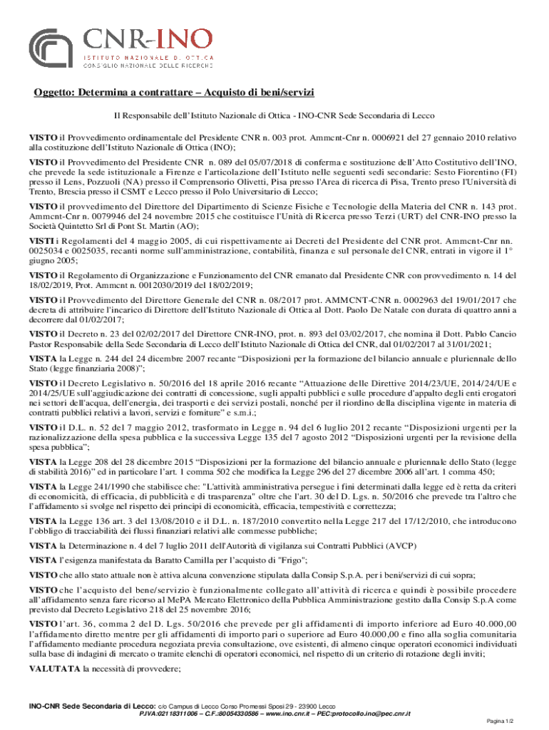 Ottieni il gratuito Il Responsabile dellIstituto Nazionale di Ottica - INO-CNR Sede Secondaria di...
