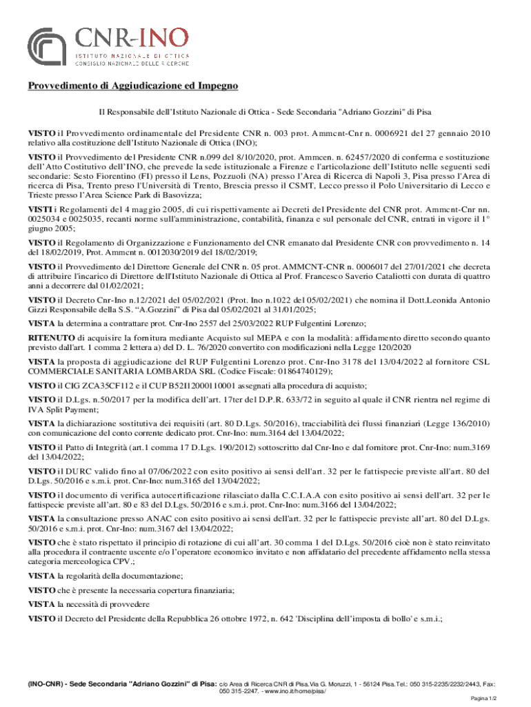 VITO IL Provvedimento ornamental Del President CNR n. 003