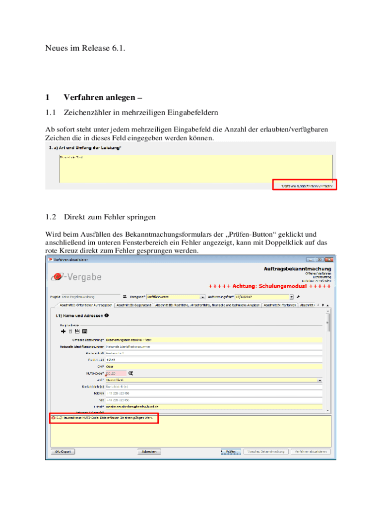 Neuss I'm Release 6.1.1Verfahren alleged 1.1 Zeichenzhler in mehrzeiligen Eingabefeldern