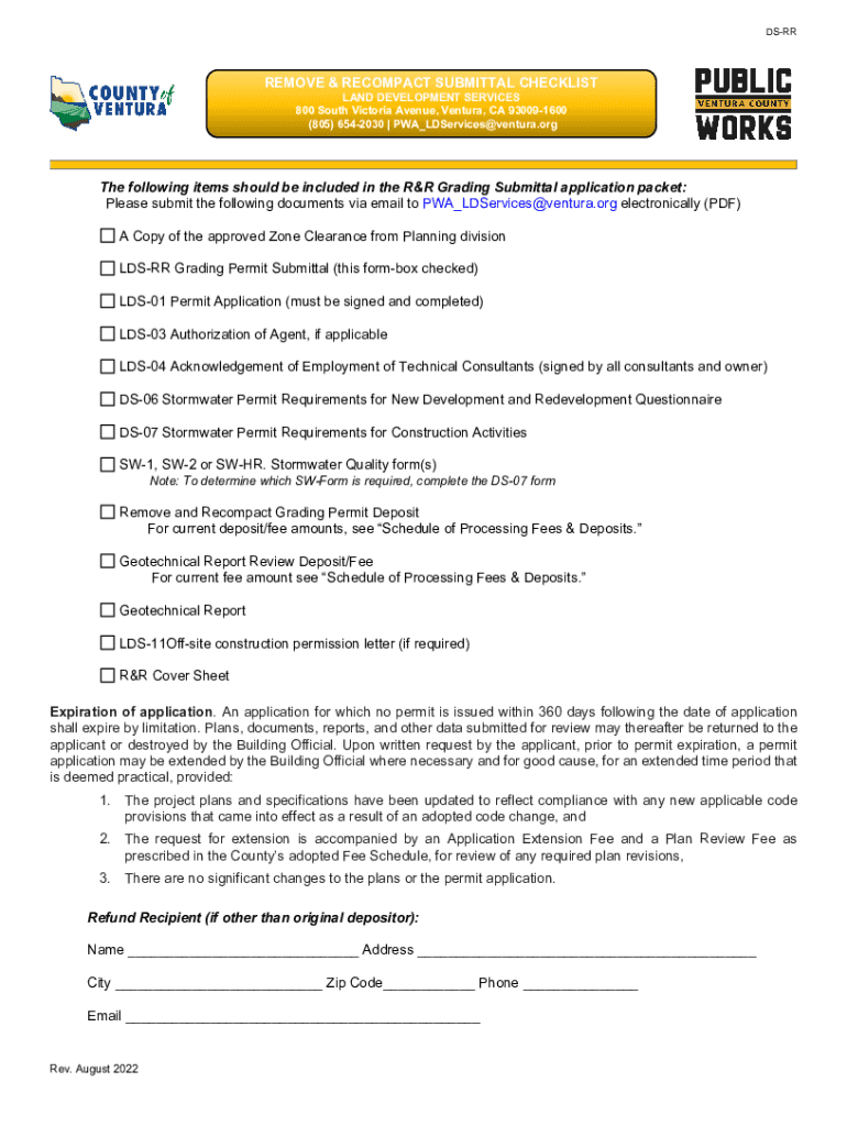 DSRRREMOVE & COMPACT SUBMITTAL CHECKLIST LAND DEVELOPMENT SERVICES 800 South Victoria Avenue, Ventura, CA 930091600 (805) 6542030 | PWA_LDServices@ventura.orgThe following items should be included