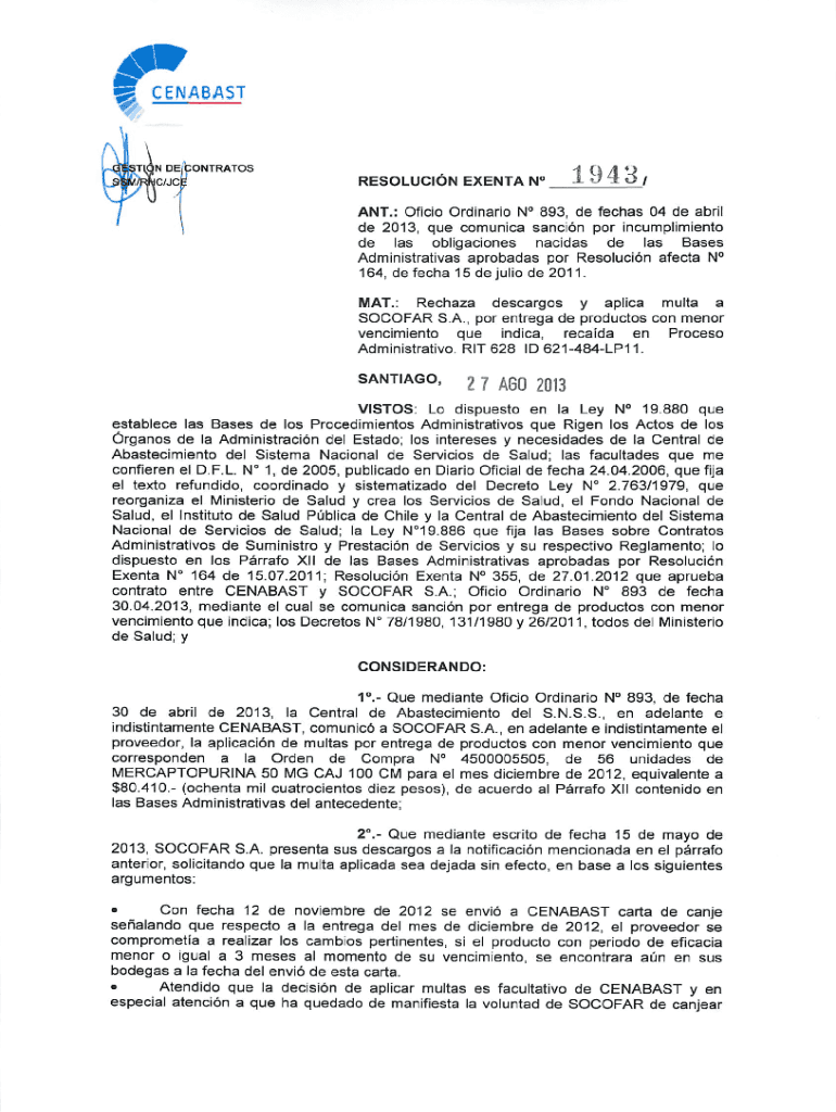 5CENABASTN DE CONTRALTOS C/JCRESOLUCIN EVENT N1943/ANT.: FICO Ordinary N 893, de Fuchs 04 de April de 2013, Que Dominica dancing POR incumplimiento de leis obligations acids DE leis Bases Administrative