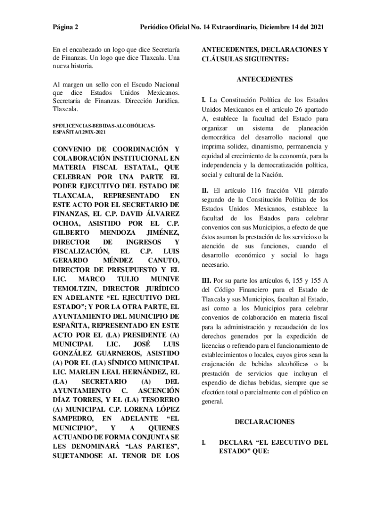 de Finanzas. UN logo Que dice Tlaxcala. RNA