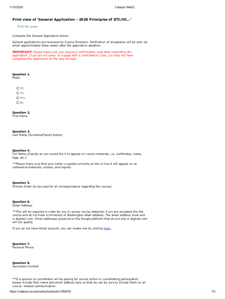 Get the free Print view of 'General Application - 2020 Principles of STI/HI...' - depts washington
