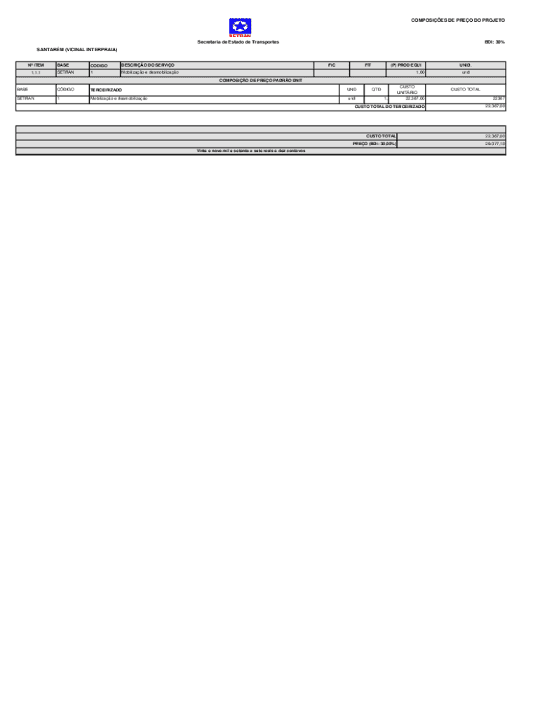 1.1.1BASECODIGODESCRIO DO SERVIOSETRAN1Mobilizao e desmobilizaoFICFIT(P) PROD EQUIP