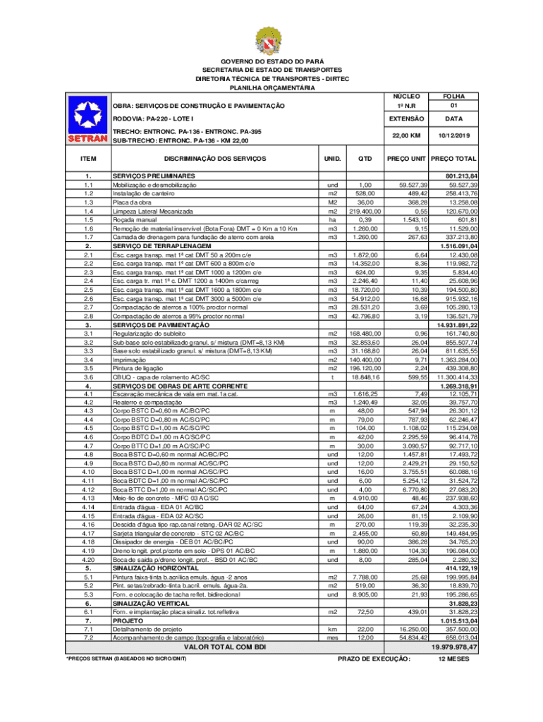 Obtenha o gratuito VALOR TOTAL COM BDI 19.979.978,47 - setran/pa