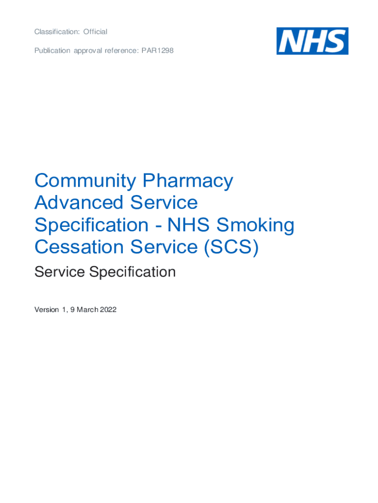 Classification: Official Publication approval reference: PAR1298Community Pharmacy Advanced Service Specification NHS Smoking Cessation Service (SCS) Service Specification Version 1, 9 March 2022Contents