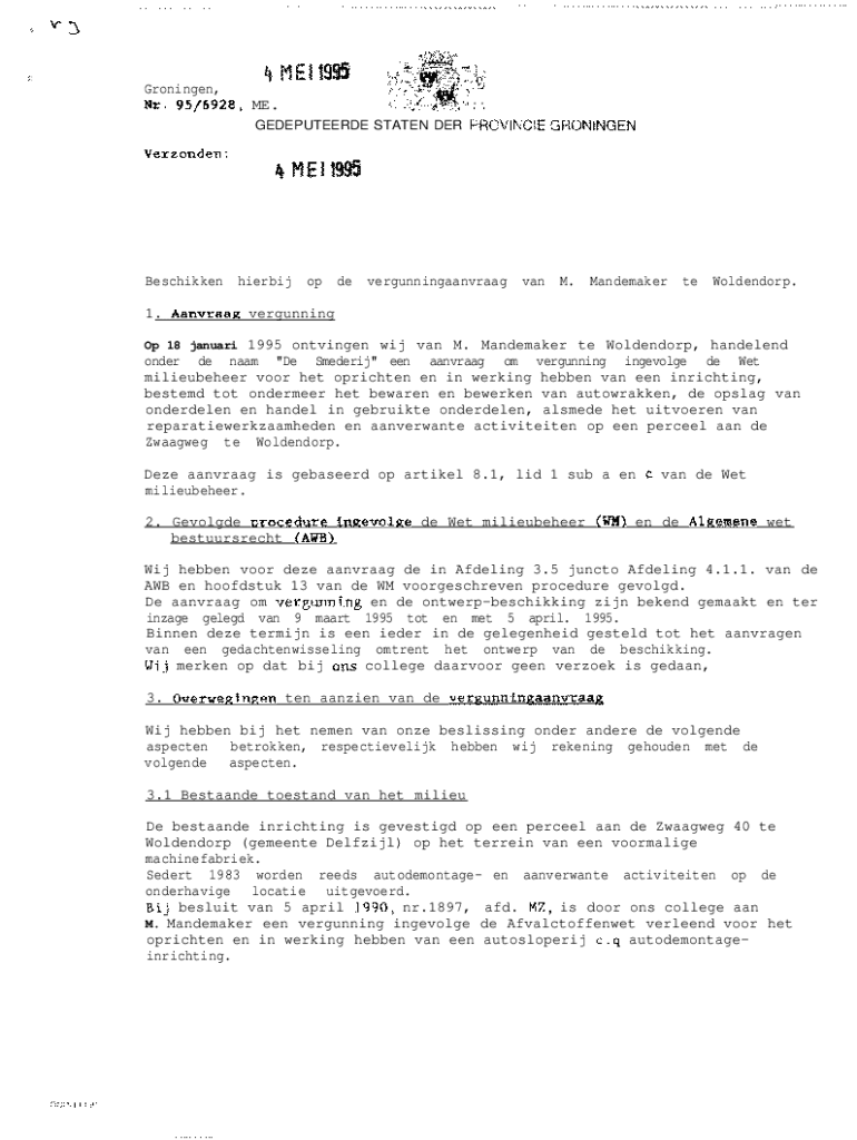 iGEDEPUTEERDE STATEN HER OK?once GRONtNGENBeschikken hairpin op de vergunningaanvraag van M. Pacemaker the Woldendorp.